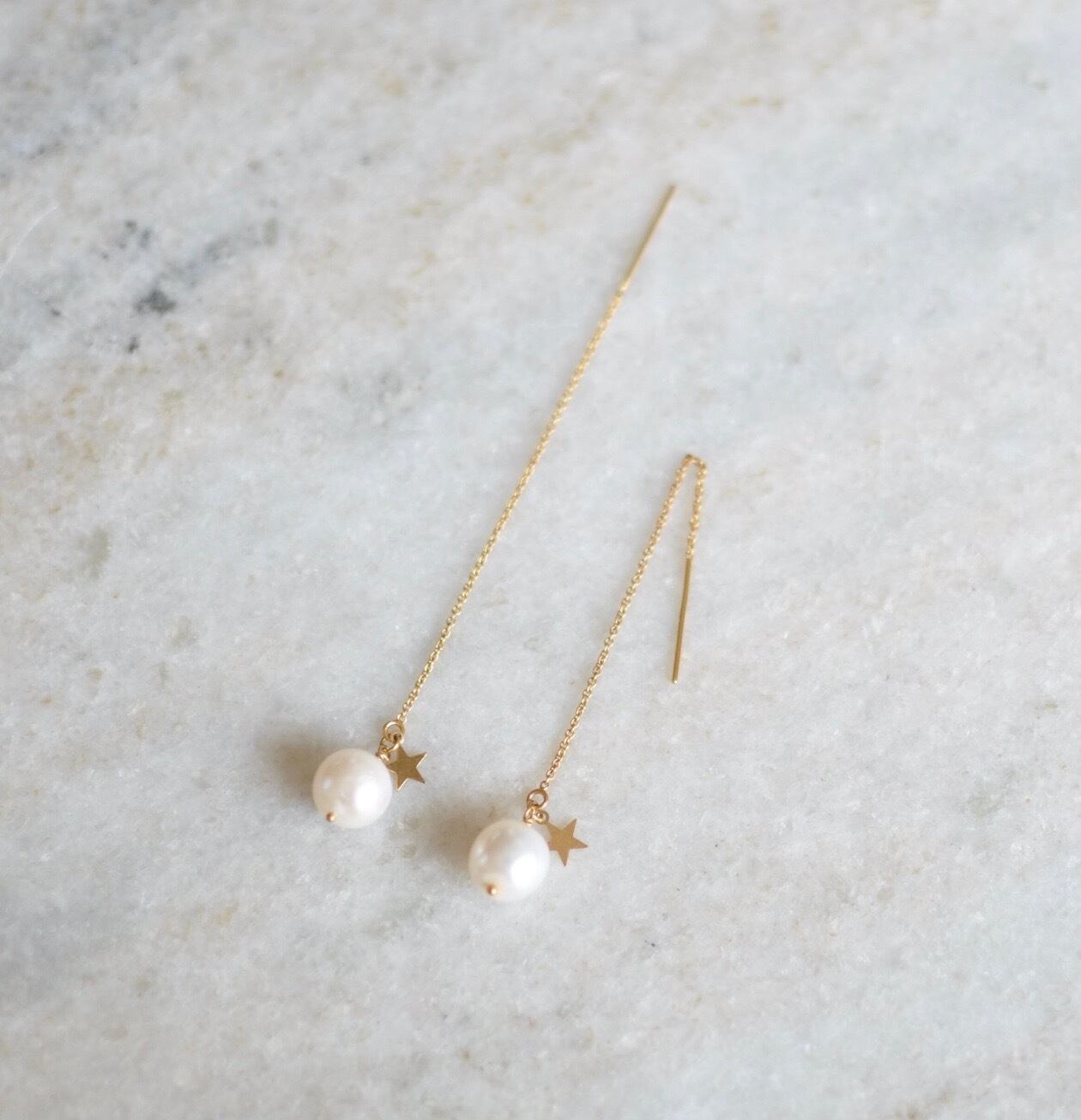 極美丸玉の淡水パールを使用したアメリカンタイプのロングピアスです。