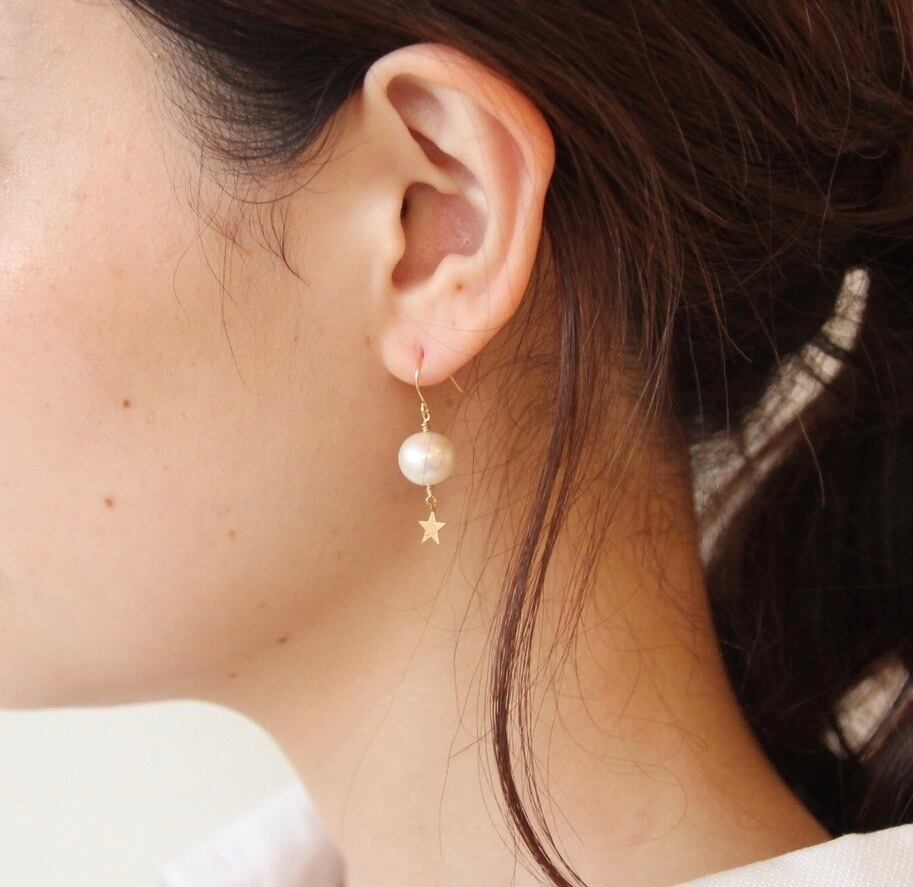 極美丸玉の淡水パールを使用したフックタイプのピアスです。